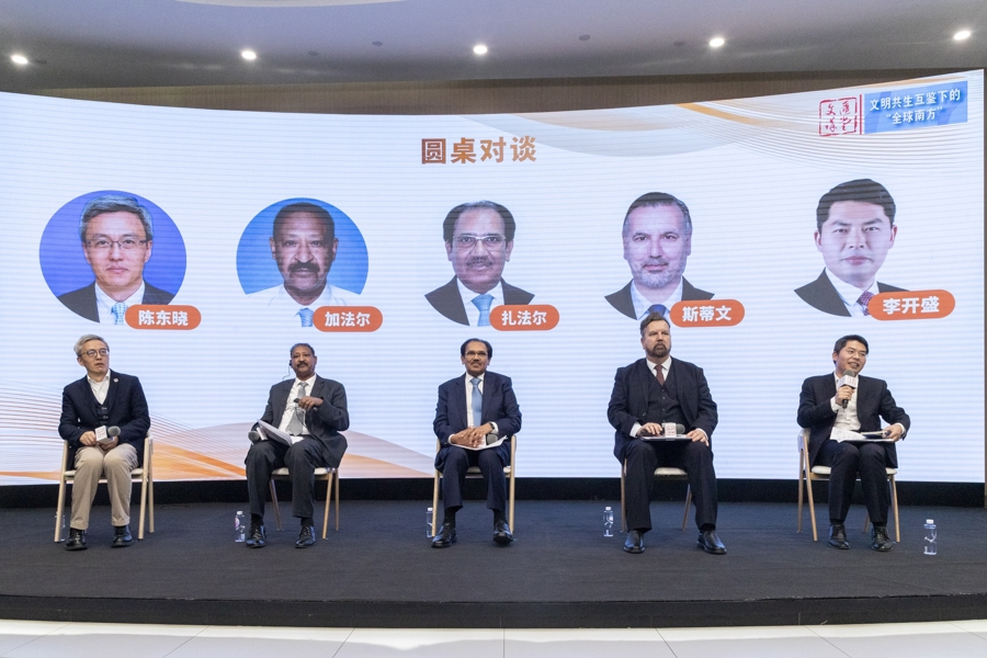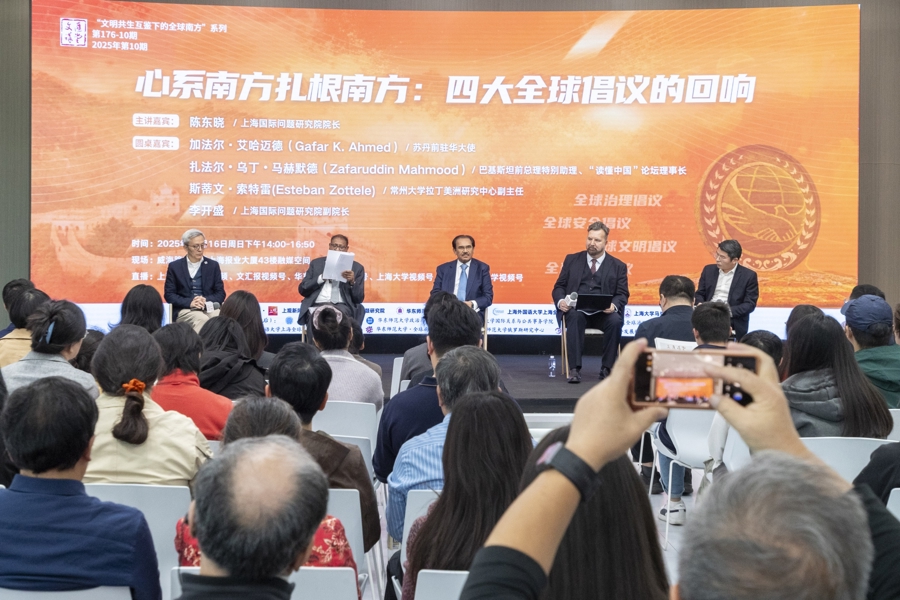 【导读】11月16日,文汇讲堂全球南方系列十讲之收官《心系南方扎根南方:四大全球倡议的回响》在上报集团成功举办。上海国际问题研究院院长陈东晓主讲,与苏丹前驻华大使加法尔·艾哈迈德(Gafar K. Ahmed)、巴基斯坦前总理特别助理兼该国“读懂中国”论坛理事长扎法尔・马赫默德(Zafaruddin Mahmood)、常州大学拉丁美洲研究中心副主任兼墨西哥维拉克鲁斯大学在华代表斯蒂文·索特雷(Esteban Zottele)、上海国际问题研究院副院长李开盛展开圆桌对话。结束后举办了简短的闭幕式,复旦大学一带一路与全球治理研究院常务副院长黄仁伟代表学者宣读了十大核心观点。2.3万余人通过六个直播平台观看直播。