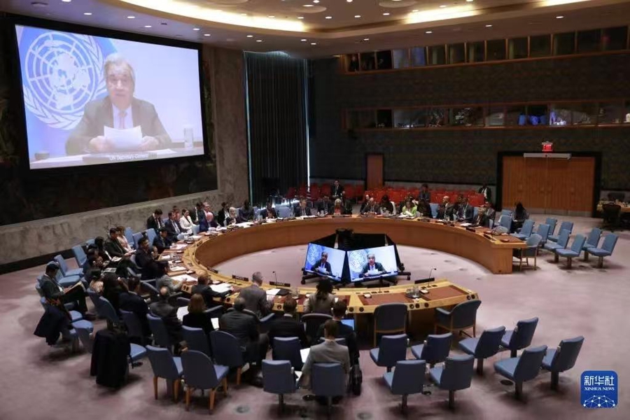 安理会改革停滞折射出全球安全治理困境,图为联合国秘书长古特雷斯在安理会发言。图源新华社