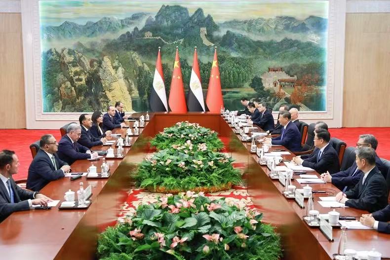 8月30日,习近平会见出席上合峰会的埃及总理马德布利。图源新华社