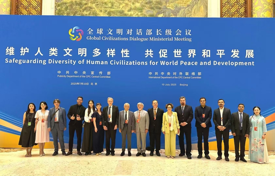 2025年7月10日,斯蒂文教授参加由中宣部和中联部在北京举办的全球文明对话部长级会议并留影,会议主题为“维护人类多样文明,促进世界和平发展” 嘉宾提供