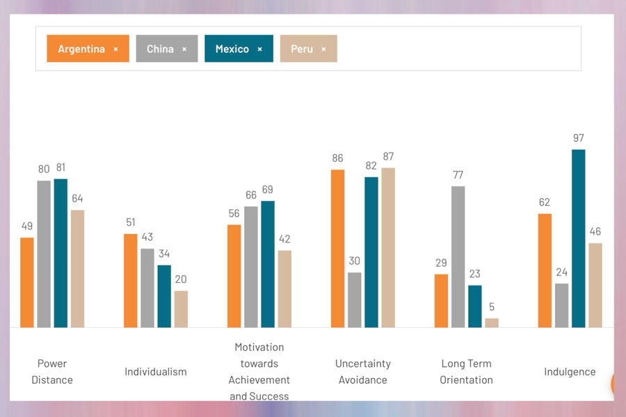 六个维度的中国和拉美文化差异表。嘉宾提供